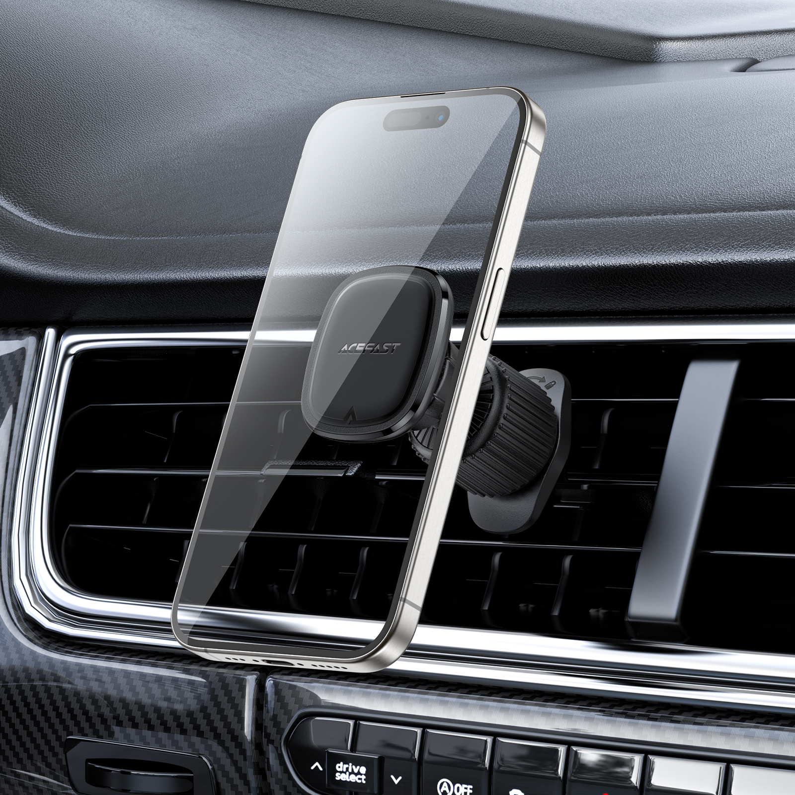 The Acefast D34 holder features a modern, compact design that fits perfectly into the interior of any car. Its elegant black color and high-quality workmanship make it not only functional but also aesthetic.