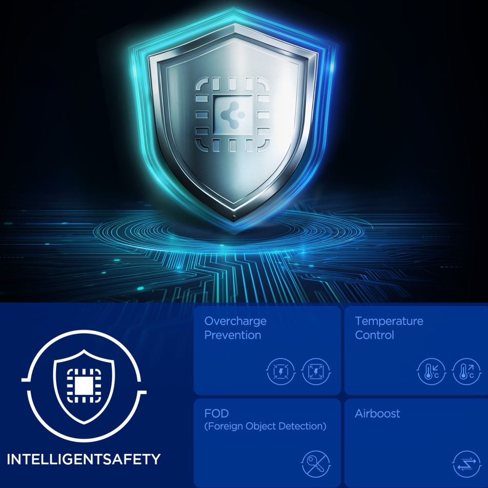 Thanks to active Peltier cooling with AirBoost, the holder regulates the phone's temperature, ensuring stable and fast charging even during long journeys and in high temperatures. The Foreign Object Detection (FOD) system detects the presence of metal or unwanted objects in the charging zone, while the Overcharge Prevention feature protects the phone's battery from overcharging, increasing the safety and longevity of the device.