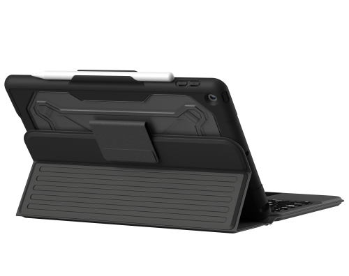 UAG Rugged Bluetooth Keyboard with Detachable Case Rugged folio case with tactical grip and auto sleep/wake function Durable, non-slip casing Superior drop protection up to 2.4m Spill-resistant keyboard Large, contoured, LED-backlit keys (7 colors, 3 brightness levels) Adjustable magnetic stand that offers four tilt modes for comfortable typing, browsing, sketching, or reading High-quality tactical exterior grip provides a safe, comfortable feel Apple Pencil storage so you can keep it close at hand Extra-large, multi-touch trackpad with gesture support so you can swipe, tap, and scroll Secure Bluetooth pairing, connect to 2 devices at once, and switch between them Long-lasting battery life that provides up to 6 months of battery life (depending on use) with USB-C charging port USB-C charging cable included
