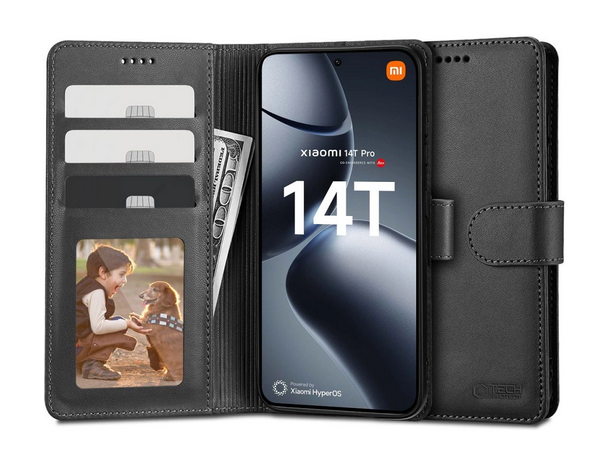 Xiaomi 14T Pro raamatuna kaitseümbris kolme kaarditaskuga, must