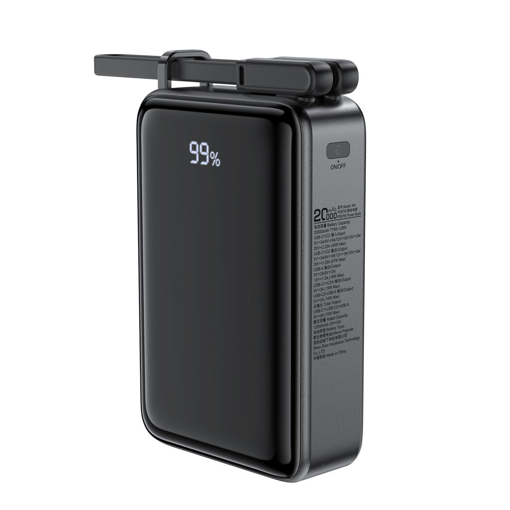 Acefast M4 PD 67W 20000mAh Powerbank with built-in cable – black