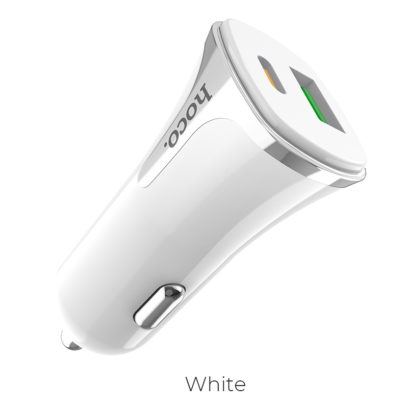 Auto USB adapter HOCO Z31A kiirlaadija Quick Charge 3.0 + Type-C PD, valge