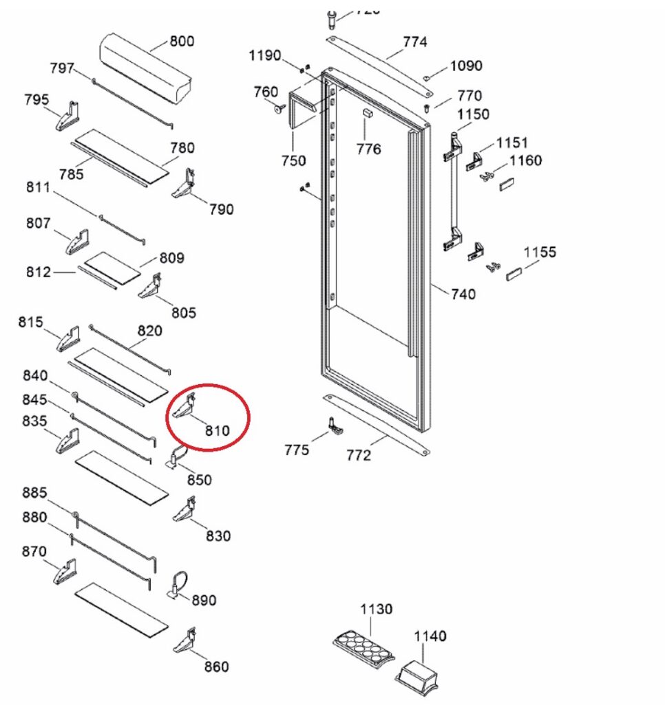 Külmiku ukse riiuli külg FBT40198 Liebherr ja teistele mudelitele